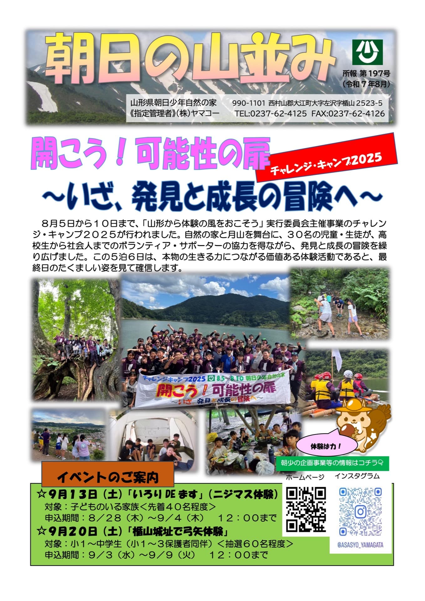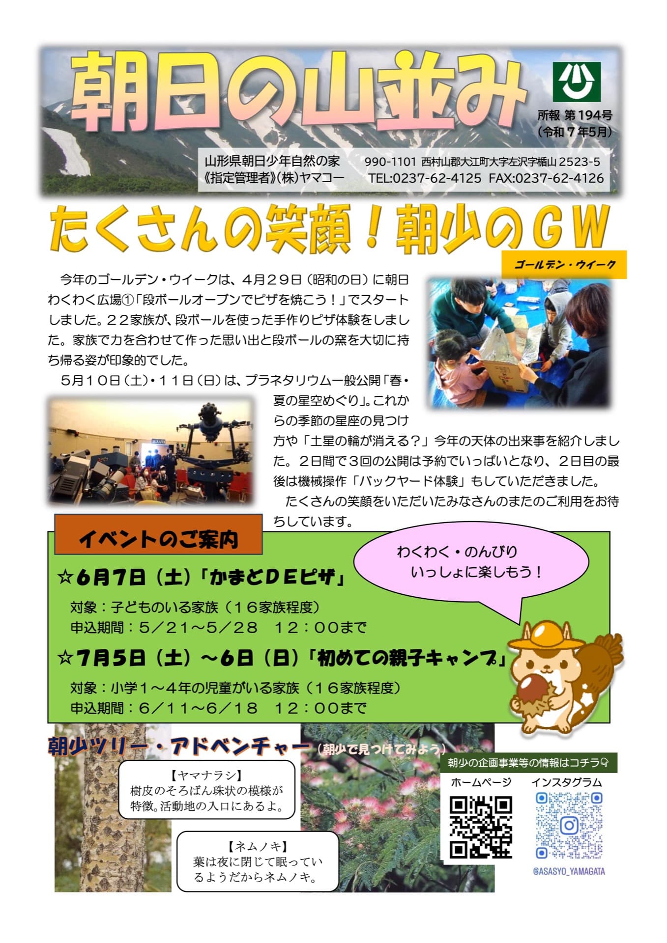新聞「朝日の山並み」 193号令和7年4月号 194号令和7年5月号 195号令和7年6月号 196号令和7年7月号 197号令和7年8月号 198号令和7年9月号 199号令和7年10月号 NEW200号令和7年11月号 NEW201号令和7年12月号 令和6年度の新聞はこちら >>